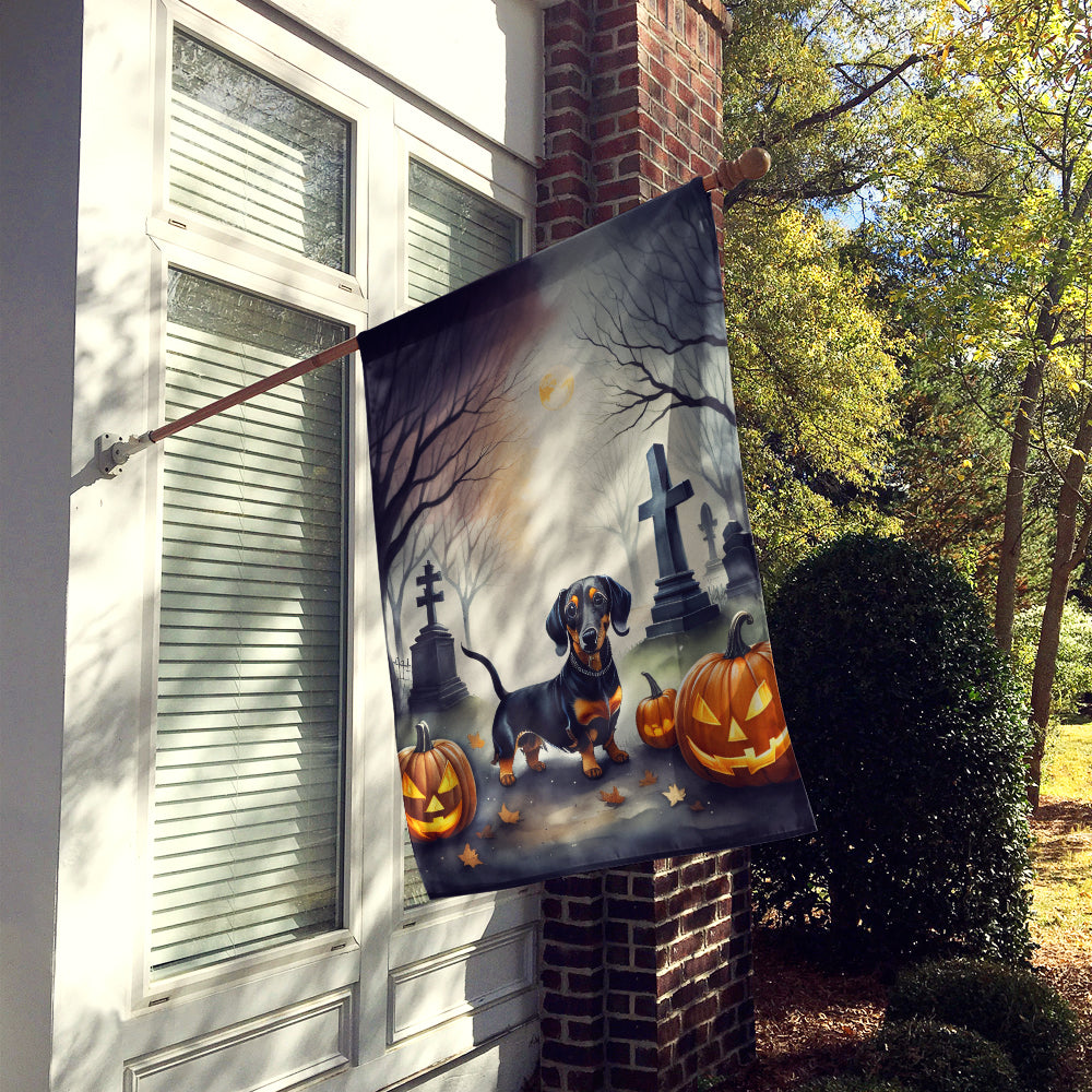 Decorate your space with our Halloween Dachshund artwork on a Large Flag. Presenting our Heavy Duty Polyester House Size Decorative Sleeve Pole Flag, a vibrant addition to enhance the aesthetic appeal of your home. This large decorative flag, measuring approximately 28 x 40 inches, offers ample coverage and visibility. Each flag is meticulously sewn and made individually, ensuring a unique piece that may slightly vary in size. It's a sleeve pole flag, designed to fit a standard decorative flag pole effortlessly. Please note that the flag pole and bracket are not included and should be purchased separately. What sets our flag apart is its dual-sided print. The design is mirrored on both sides of the fabric, allowing for uniform visibility regardless of the angle. Printed in full color, our flag showcases vibrant hues that truly stand out. To ensure lasting vibrancy and durability, the dyes are heat-set into the fabric. This ensures your flag remains bright and captivating through various weather conditions. Elevate the look of your home with our Heavy Duty Polyester House Size Decorative Sleeve Pole Flag!