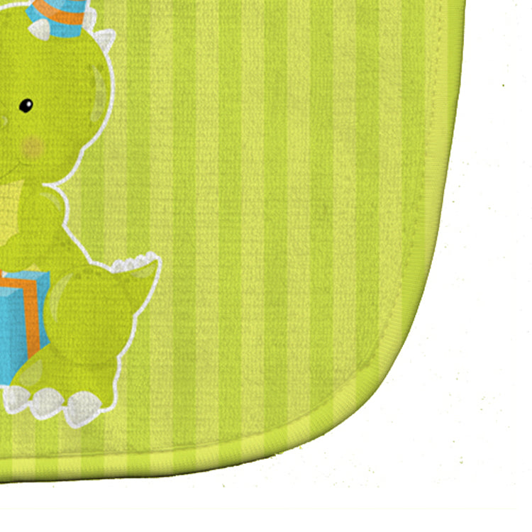 Decorate your space with our Dinosaur artwork on a Baby Bib. Cute and Functional. Dyed plush fabric baby bib with Velcro closure. Made of ultra-smooth micro-mink polyester that reverses to 100% cotton terry loops. Measures 10 inches x 13 inches, 0.8 oz. per piece. Edges are finished with binding. Machine washable and dry on low heat. Fade resistant and stain resistant. Top fabric gets even softer after the first wash.