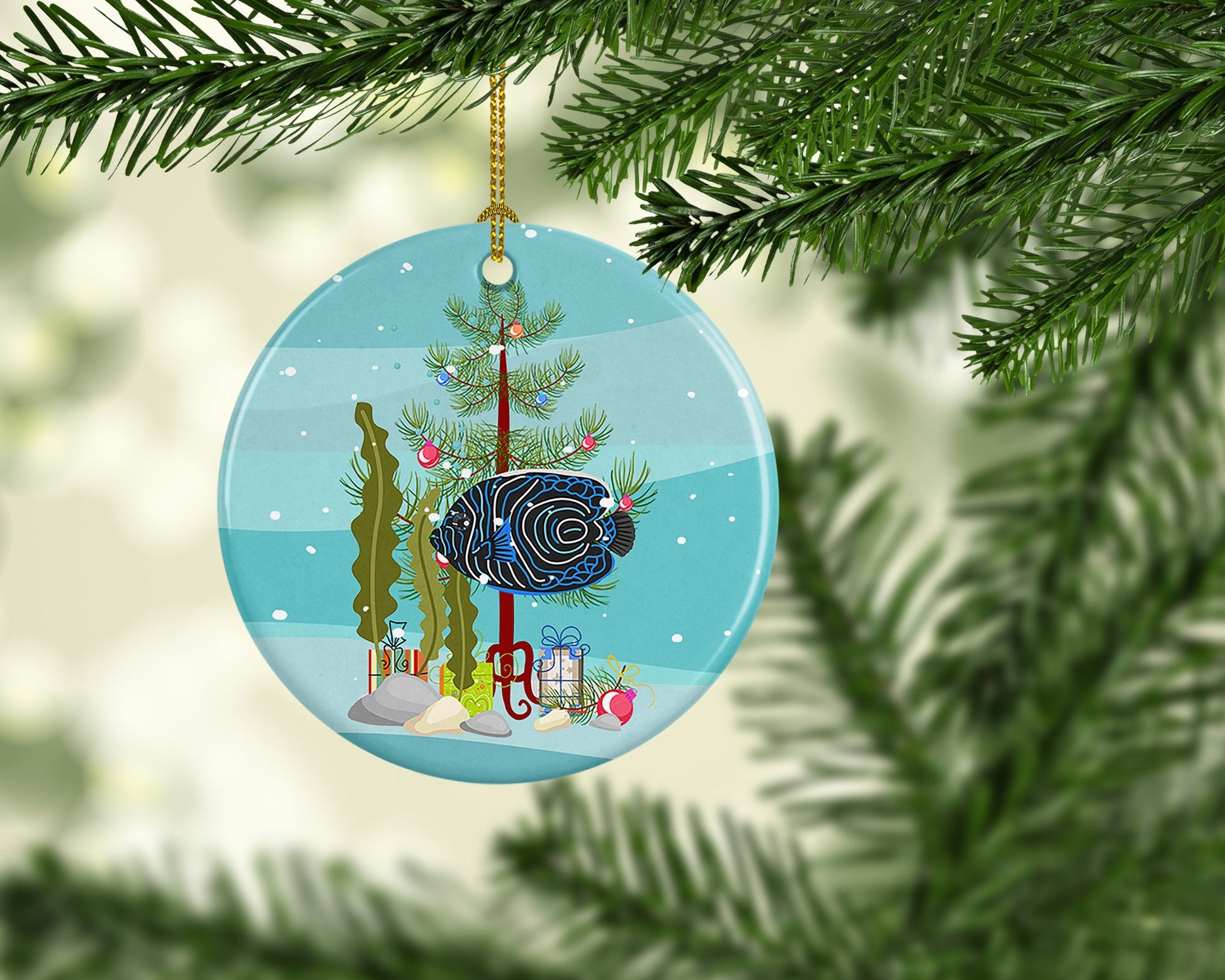 Emperor Angelfish Merry Christmas Ornament - Round Ceramic Ornament – Artist-Designed Keepsake Decoration