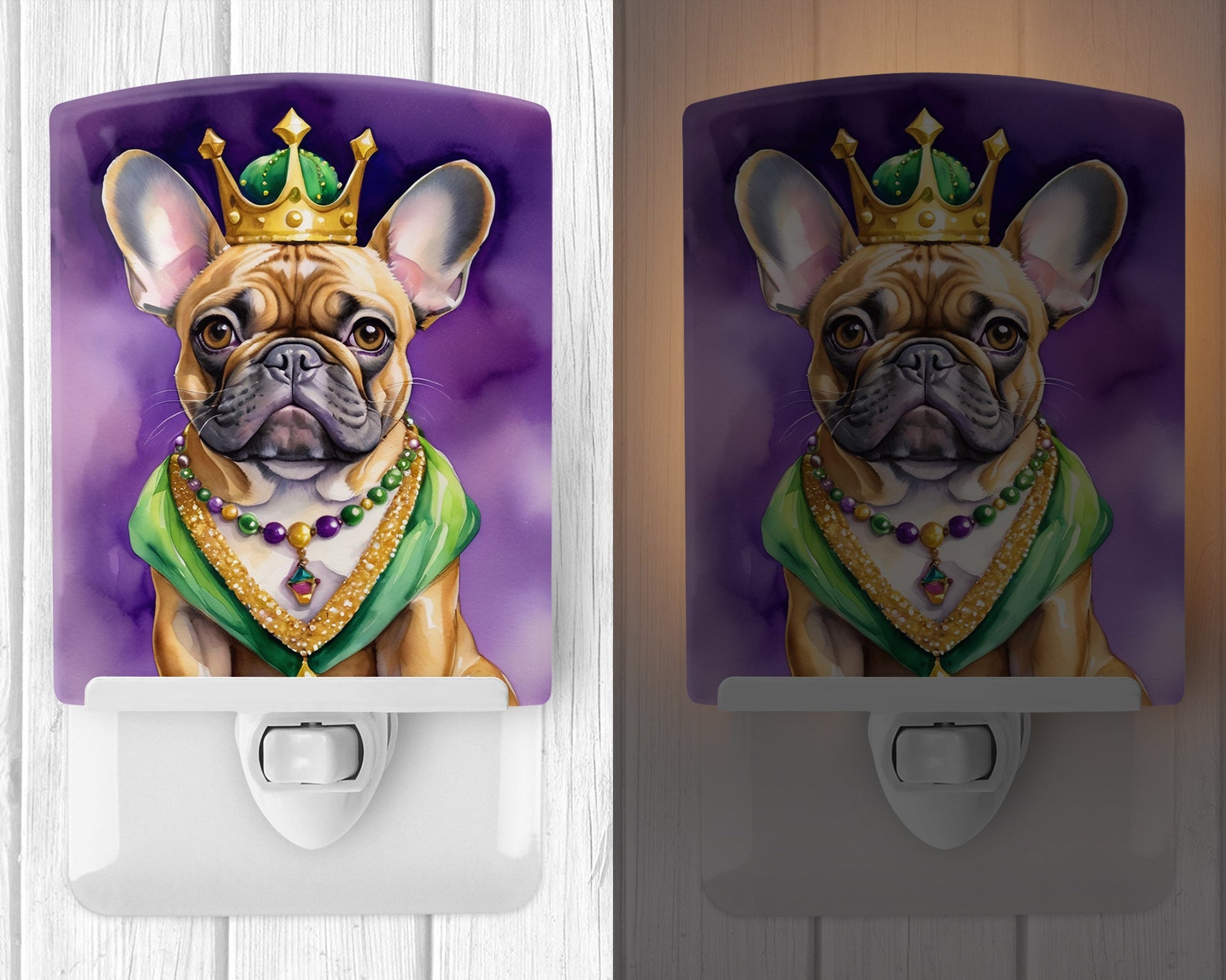 French Bulldog King of Mardi Gras Ceramic Night Light
