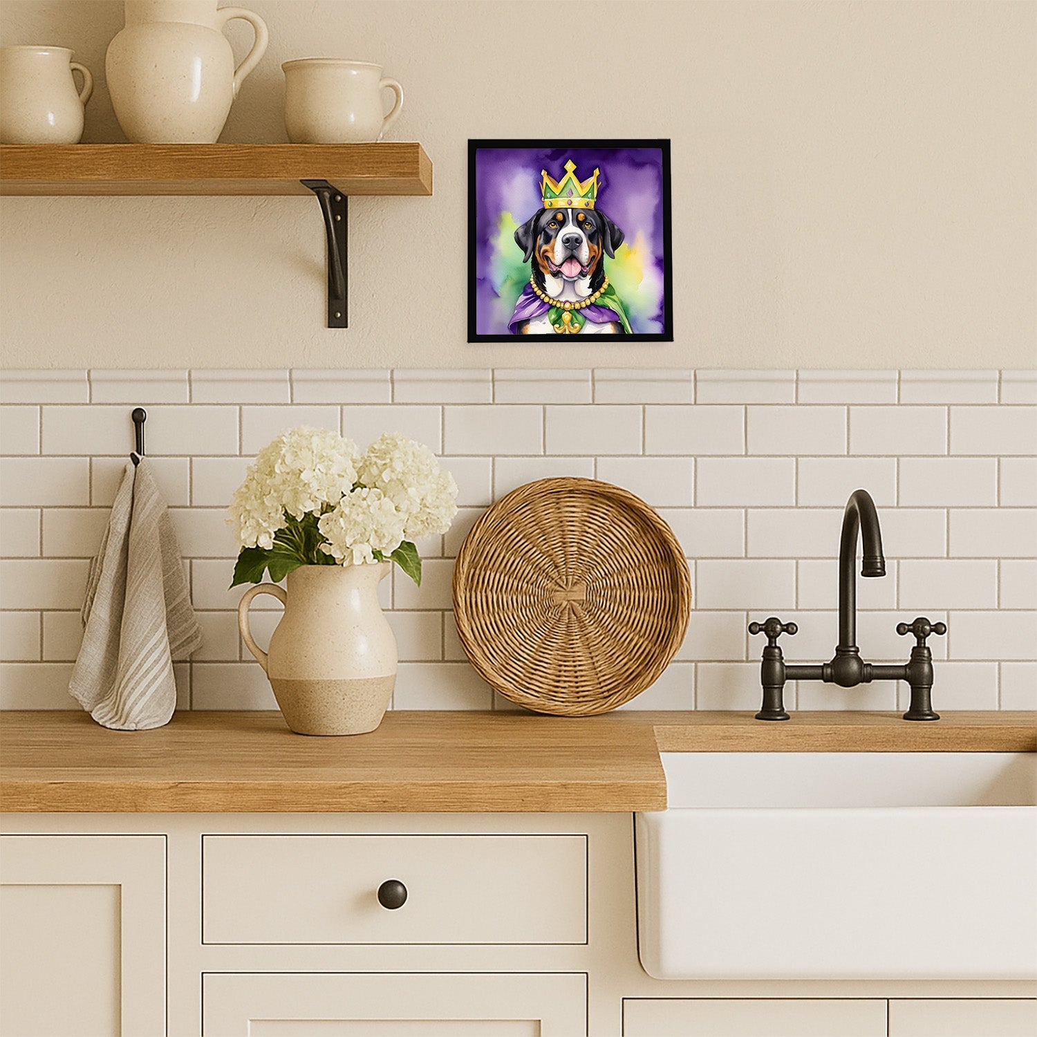 Framed Metal Print featuring breed specific Greater Swiss Mountain Dog artwork. Celebrate Mardi Gras with this Mardi Gras Framed Metal Print. Looking for wall art that’s stylish, safe, and made to last? Our 8x8 Framed Metal Prints are designed with modern living in mind. Each piece features original artwork printed on durable aluminum, set in a sleek frame that measures 3/4 inch deep for a clean, contemporary finish. Unlike glass prints, these are lightweight, shatter-free, and family-safe. Perfect for kitchens, bathrooms, or covered porches where traditional décor might not hold up. The built-in sawtooth hanger molded into the back makes it easy to hang right out of the box—just use your own nails or screws. Cleaning is simple too: a quick wipe with a damp cloth and mild soap keeps your artwork looking vibrant. Proudly made in Alabama, every print supports our community of artists while adding personality and charm to your home.