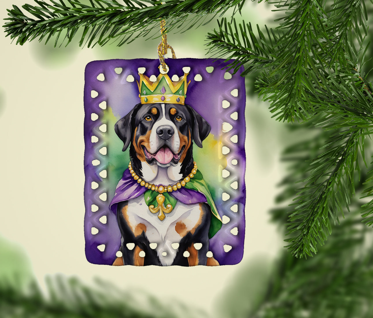 Greater Swiss Mountain Dog King of Mardi Gras Porcelain Ornament