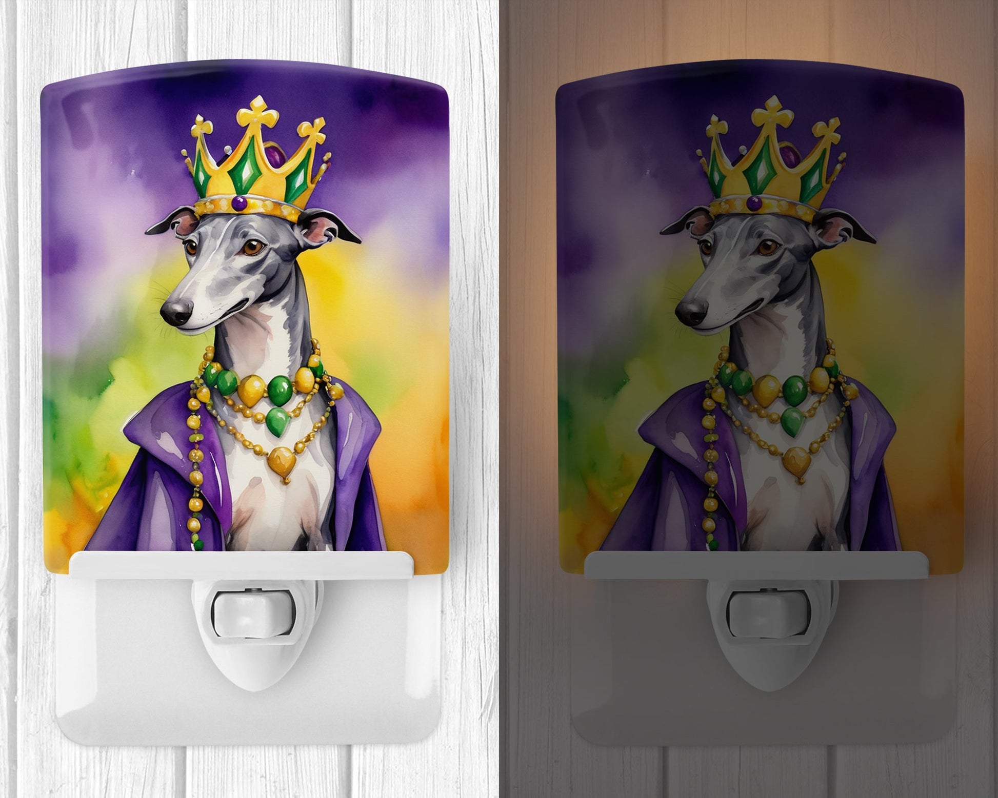Decorate your space with our Mardi Gras Greyhound artwork on a Night Light. Introduce a splash of artistic flair and subtle illumination to your space with the Decorative Ceramic Night Light from Caroline's Treasures. Perfect for any room, this night light seamlessly blends functionality with an aesthetic appeal, offering a stylish solution to brighten up dark corners of your home or office. Boasting a six-inch high by four-inch wide ceramic tile at the front, it showcases vivid, full-color artwork from distinguished artists, transforming a simple utility into a vibrant art piece. The artwork is securely encased in a robust metal holder, ensuring durability and longevity. Two screws are provided to firmly affix the tile into the holder. The holder extends three inches deep, housing an included bulb that emits a soft, welcoming glow. This product meets all safety standards, as evidenced by its UL approval. Proudly made in the United States from imported components, this Decorative Ceramic Night Light is not just a functional device; it's a statement piece that enhances the ambiance of your surroundings.