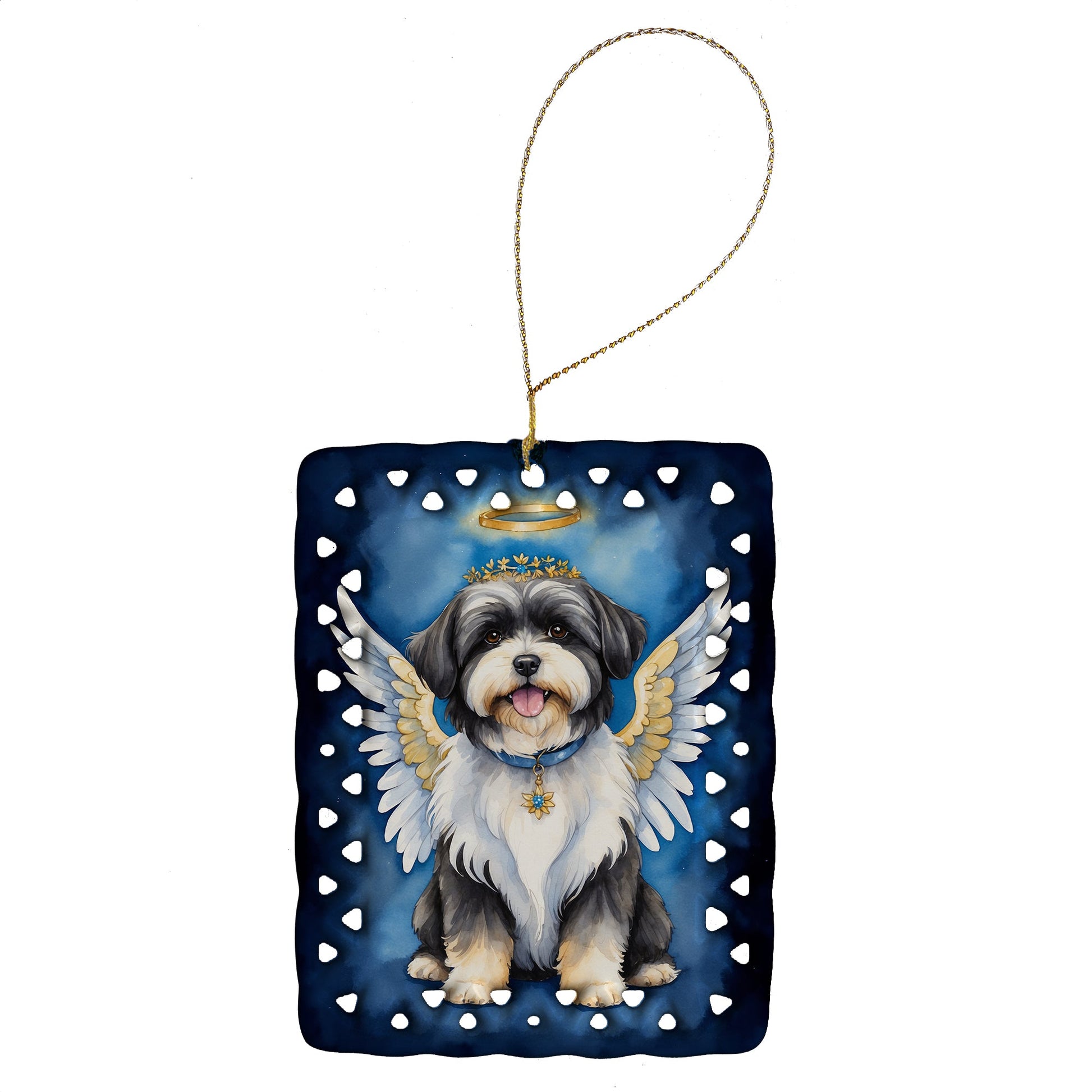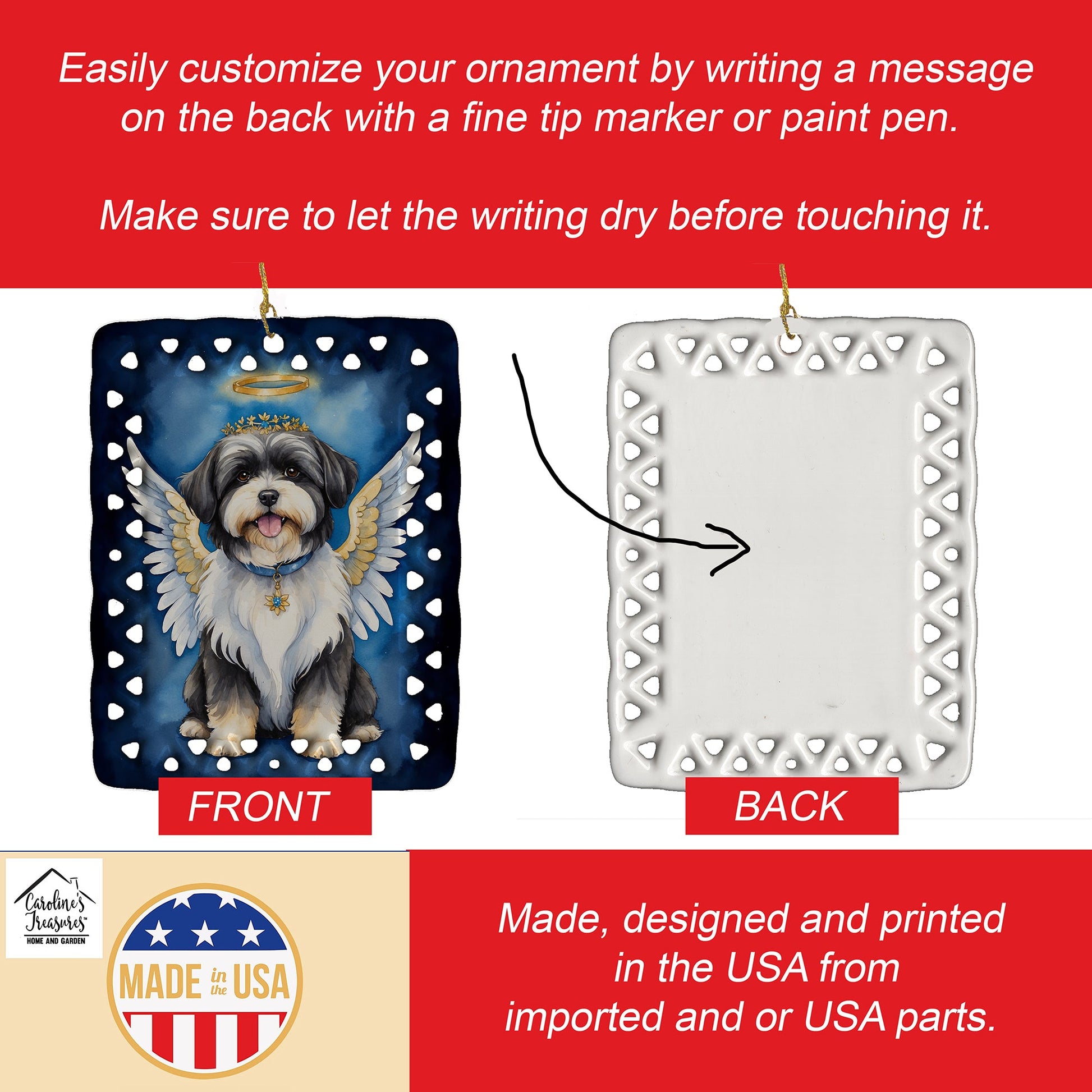 Porcelain Ornament featuring breed specific Havanese artwork. Celebrate Christmas with this Christmas Ornament. Add a unique, personal touch to your holiday decor with our Rectangular Lattice Porcelain Ornament. Perfect for creating cherished memories, this high-quality ornament shines under festive lights, reflecting warmth and joy throughout your Christmas tree. Crafted with a glossy finish, it showcases vibrant, full-color artwork contributed by our talented artists, ensuring your tree is adorned with a burst of color and holiday spirit. What sets this Porcelain Ornament apart is its customizable white back. Use a paint pen or permanent marker to write a heartfelt message, commemorate a special year, or mark an unforgettable date, turning this ornament into a keepsake that will be treasured for years to come. For best results, allow any personalization to dry thoroughly before handling. Each ornament comes complete with a delicate gold cord, making it easy to hang and display. Proudly made in the USA, this ornament measures 3.375 x 2.625 inches and is a thoughtful gift for pet sitters, teachers, family members, or anyone who would appreciate a little extra holiday magic. Bring style, charm, and a touch of personal meaning to your Christmas tree with this beautifully designed ornament..