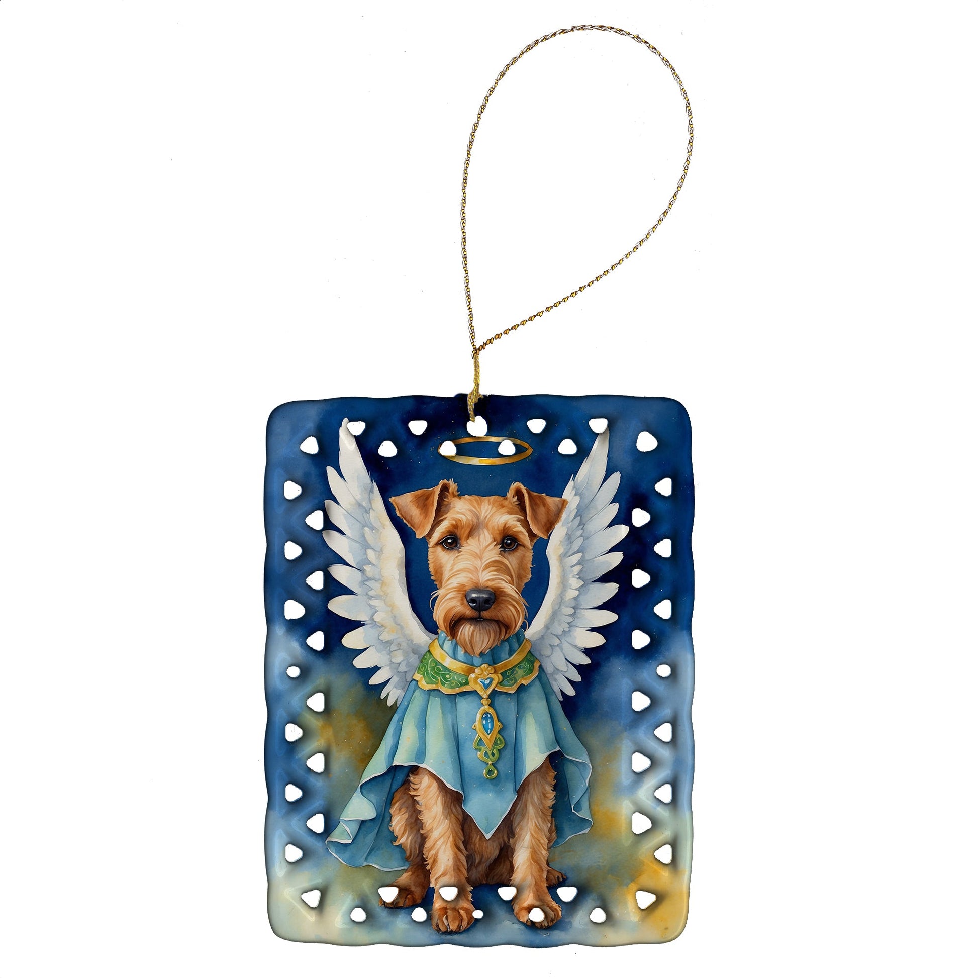Porcelain Ornament featuring breed specific Irish Terrier artwork. Celebrate Christmas with this Christmas Ornament. Add a unique, personal touch to your holiday decor with our Rectangular Lattice Porcelain Ornament. Perfect for creating cherished memories, this high-quality ornament shines under festive lights, reflecting warmth and joy throughout your Christmas tree. Crafted with a glossy finish, it showcases vibrant, full-color artwork contributed by our talented artists, ensuring your tree is adorned with a burst of color and holiday spirit. What sets this Porcelain Ornament apart is its customizable white back. Use a paint pen or permanent marker to write a heartfelt message, commemorate a special year, or mark an unforgettable date, turning this ornament into a keepsake that will be treasured for years to come. For best results, allow any personalization to dry thoroughly before handling. Each ornament comes complete with a delicate gold cord, making it easy to hang and display. Proudly made in the USA, this ornament measures 3.375 x 2.625 inches and is a thoughtful gift for pet sitters, teachers, family members, or anyone who would appreciate a little extra holiday magic. Bring style, charm, and a touch of personal meaning to your Christmas tree with this beautifully designed ornament..