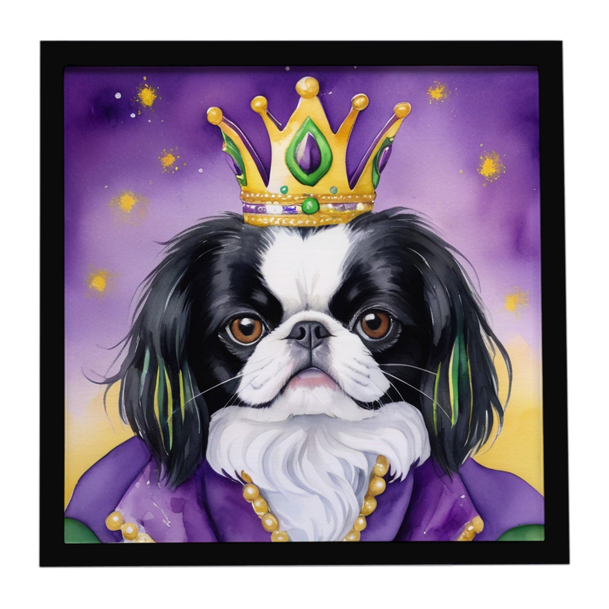 Japanese Chin King of Mardi Gras Framed Metal Print