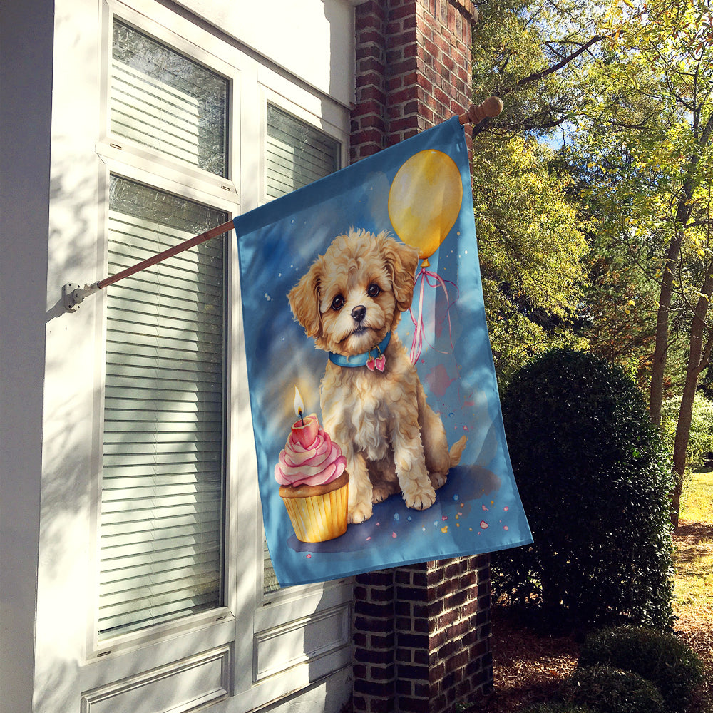 House Flag featuring breed specific Maltipoo artwork. Celebrate Birthday with this Birthday Large Flag. Presenting our Heavy Duty Polyester House Size Decorative Sleeve Pole Flag, a vibrant addition to enhance the aesthetic appeal of your home. This large decorative flag, measuring approximately 28 x 40 inches, offers ample coverage and visibility. Each flag is meticulously sewn and made individually, ensuring a unique piece that may slightly vary in size. It's a sleeve pole flag, designed to fit a standard decorative flag pole effortlessly. Please note that the flag pole and bracket are not included and should be purchased separately. What sets our flag apart is its dual-sided print. The design is mirrored on both sides of the fabric, allowing for uniform visibility regardless of the angle. Printed in full color, our flag showcases vibrant hues that truly stand out. To ensure lasting vibrancy and durability, the dyes are heat-set into the fabric. This ensures your flag remains bright and captivating through various weather conditions. Elevate the look of your home with our Heavy Duty Polyester House Size Decorative Sleeve Pole Flag!