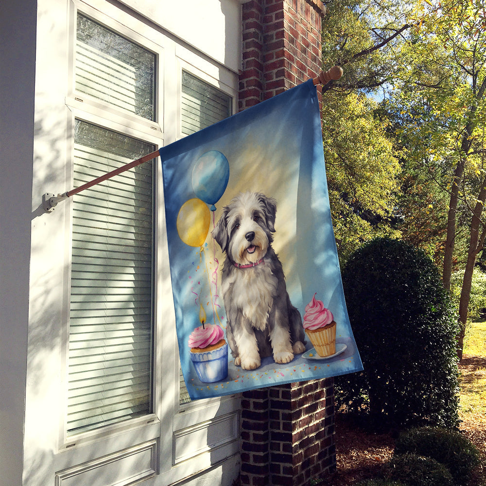 House Flag featuring breed specific Old English Sheepdog artwork. Celebrate Birthday with this Birthday Large Flag. Presenting our Heavy Duty Polyester House Size Decorative Sleeve Pole Flag, a vibrant addition to enhance the aesthetic appeal of your home. This large decorative flag, measuring approximately 28 x 40 inches, offers ample coverage and visibility. Each flag is meticulously sewn and made individually, ensuring a unique piece that may slightly vary in size. It's a sleeve pole flag, designed to fit a standard decorative flag pole effortlessly. Please note that the flag pole and bracket are not included and should be purchased separately. What sets our flag apart is its dual-sided print. The design is mirrored on both sides of the fabric, allowing for uniform visibility regardless of the angle. Printed in full color, our flag showcases vibrant hues that truly stand out. To ensure lasting vibrancy and durability, the dyes are heat-set into the fabric. This ensures your flag remains bright and captivating through various weather conditions. Elevate the look of your home with our Heavy Duty Polyester House Size Decorative Sleeve Pole Flag!
