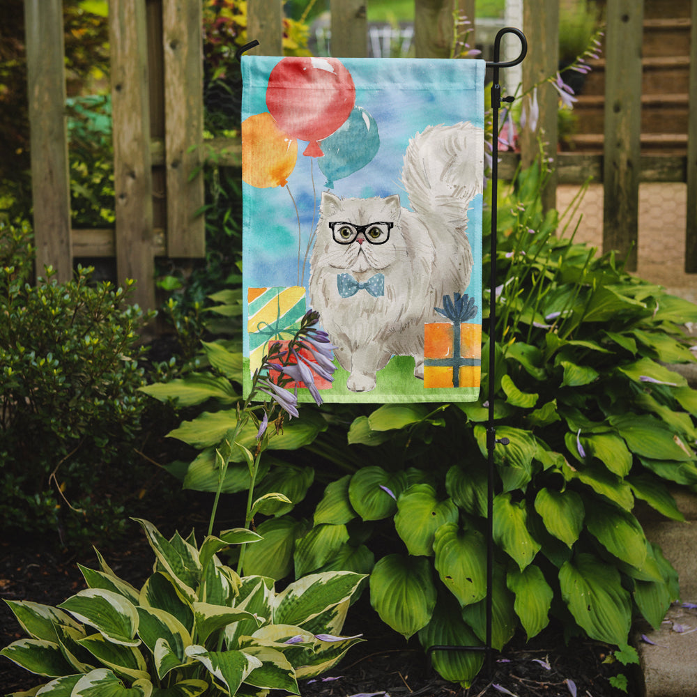 Decorate your space with our Birthday Persian artwork on a Garden Flag. Enhance the beauty of your garden, patio, or yard with Caroline's Treasures Decorative Garden Flag, proudly made in the USA. Crafted from two pieces of thick, double-sided polyester fabric, this 2-ply garden flag is designed to withstand various weather conditions, making it water-resistant and weatherproof. Featuring correctly readable words on both sides, this garden flag offers a delightful visual experience from any angle. With its heavier weight, it stands out among other garden flags, ensuring stability and durability even in wind, rain, and snow. Measuring approximately 11 1/4 inches by 15 1/2 inches, this flag allows you to personalize your outdoor decor. It comes with a 1 1/2-inch sleeve sewn in, allowing easy attachment to any standard garden flag stand or garden size porch hanger (sold separately). Make a statement in your outdoor space with Caroline's Treasures Decorative Garden Flag, a vibrant and high-quality flag that adds color and personality to your surroundings. Proudly made in the USA, it's a symbol of quality craftsmanship and attention to detail.