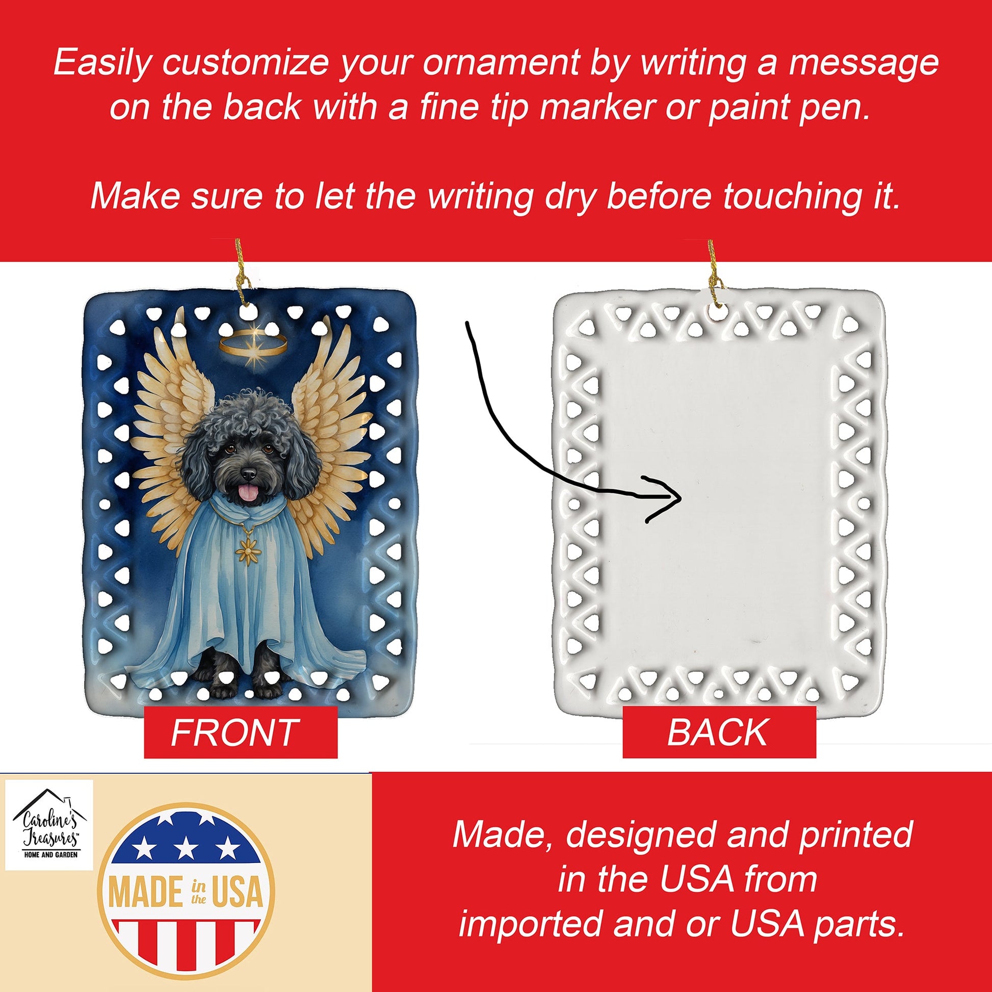 Porcelain Ornament featuring breed specific Puli artwork. Celebrate Christmas with this Christmas Ornament. Add a unique, personal touch to your holiday decor with our Rectangular Lattice Porcelain Ornament. Perfect for creating cherished memories, this high-quality ornament shines under festive lights, reflecting warmth and joy throughout your Christmas tree. Crafted with a glossy finish, it showcases vibrant, full-color artwork contributed by our talented artists, ensuring your tree is adorned with a burst of color and holiday spirit. What sets this Porcelain Ornament apart is its customizable white back. Use a paint pen or permanent marker to write a heartfelt message, commemorate a special year, or mark an unforgettable date, turning this ornament into a keepsake that will be treasured for years to come. For best results, allow any personalization to dry thoroughly before handling. Each ornament comes complete with a delicate gold cord, making it easy to hang and display. Proudly made in the USA, this ornament measures 3.375 x 2.625 inches and is a thoughtful gift for pet sitters, teachers, family members, or anyone who would appreciate a little extra holiday magic. Bring style, charm, and a touch of personal meaning to your Christmas tree with this beautifully designed ornament..