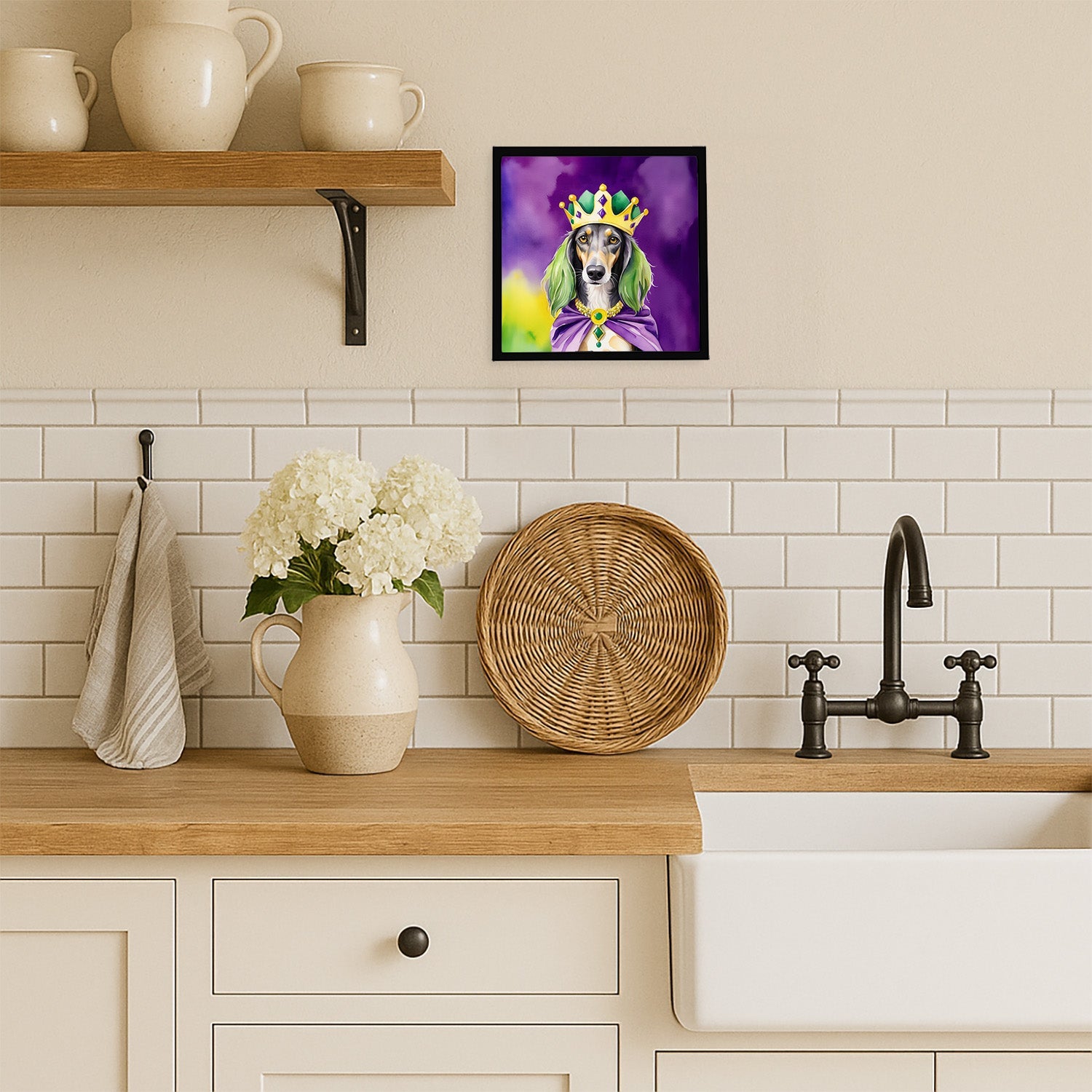 Framed Metal Print featuring breed specific Saluki artwork. Celebrate Mardi Gras with this Mardi Gras Framed Metal Print. Looking for wall art that’s stylish, safe, and made to last? Our 8x8 Framed Metal Prints are designed with modern living in mind. Each piece features original artwork printed on durable aluminum, set in a sleek frame that measures 3/4 inch deep for a clean, contemporary finish. Unlike glass prints, these are lightweight, shatter-free, and family-safe. Perfect for kitchens, bathrooms, or covered porches where traditional décor might not hold up. The built-in sawtooth hanger molded into the back makes it easy to hang right out of the box—just use your own nails or screws. Cleaning is simple too: a quick wipe with a damp cloth and mild soap keeps your artwork looking vibrant. Proudly made in Alabama, every print supports our community of artists while adding personality and charm to your home.