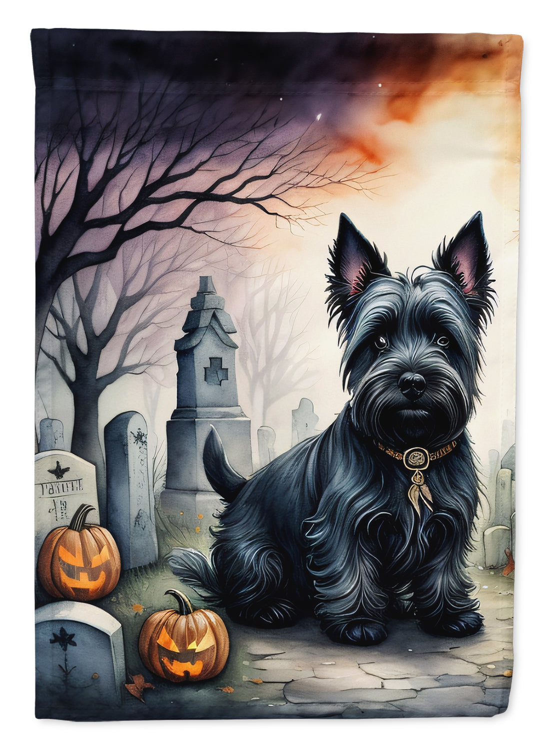Scottish Terrier Spooky Halloween Garden Flag – Dog in Cemetery Scene