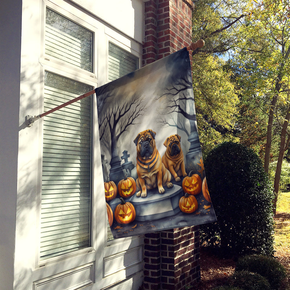 Decorate your space with our Halloween Shar Pei artwork on a Large Flag. Presenting our Heavy Duty Polyester House Size Decorative Sleeve Pole Flag, a vibrant addition to enhance the aesthetic appeal of your home. This large decorative flag, measuring approximately 28 x 40 inches, offers ample coverage and visibility. Each flag is meticulously sewn and made individually, ensuring a unique piece that may slightly vary in size. It's a sleeve pole flag, designed to fit a standard decorative flag pole effortlessly. Please note that the flag pole and bracket are not included and should be purchased separately. What sets our flag apart is its dual-sided print. The design is mirrored on both sides of the fabric, allowing for uniform visibility regardless of the angle. Printed in full color, our flag showcases vibrant hues that truly stand out. To ensure lasting vibrancy and durability, the dyes are heat-set into the fabric. This ensures your flag remains bright and captivating through various weather conditions. Elevate the look of your home with our Heavy Duty Polyester House Size Decorative Sleeve Pole Flag!