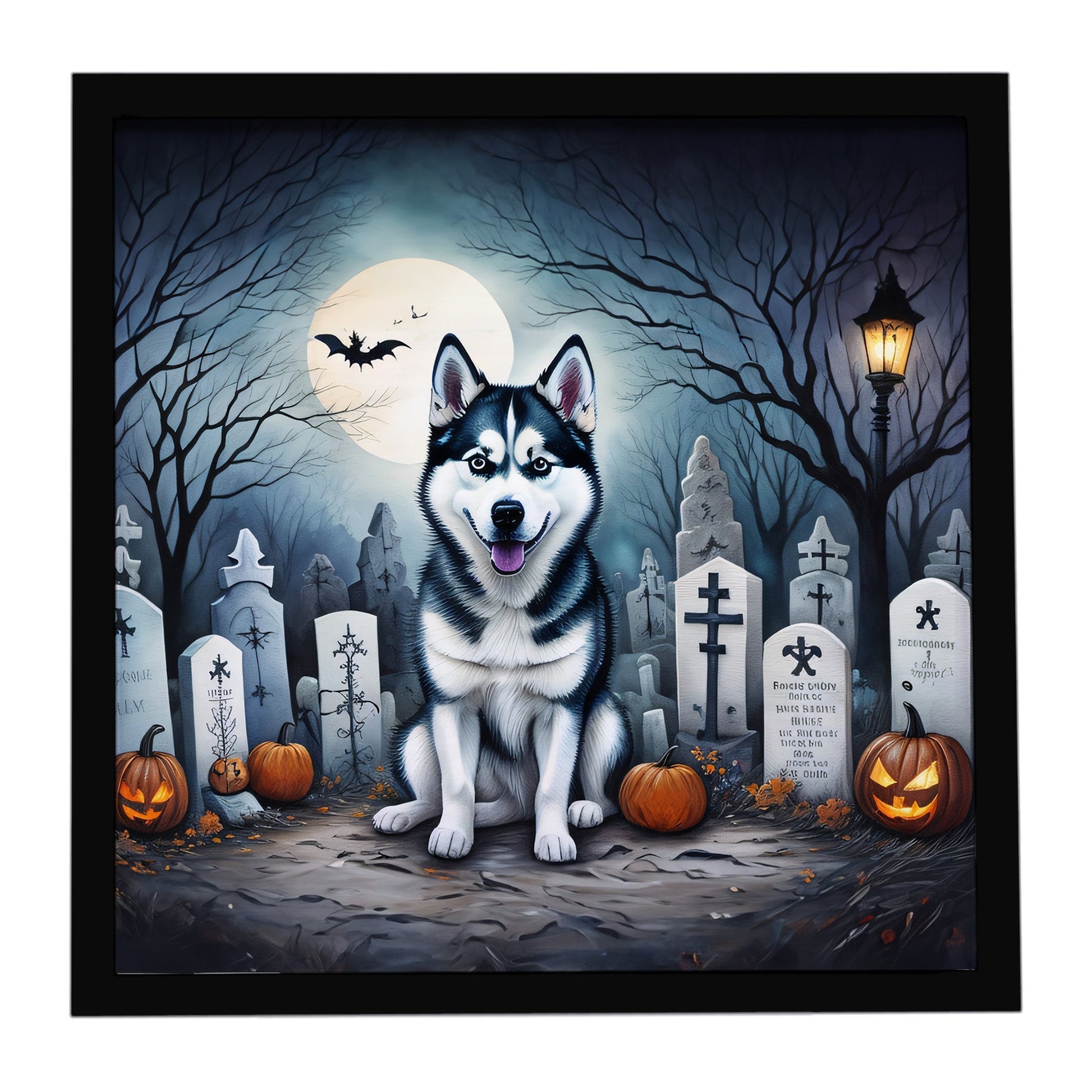 Framed Metal Print featuring breed specific Siberian Husky artwork. Celebrate Halloween with this Halloween Framed Metal Print. Looking for wall art that’s stylish, safe, and made to last? Our 8x8 Framed Metal Prints are designed with modern living in mind. Each piece features original artwork printed on durable aluminum, set in a sleek frame that measures 3/4 inch deep for a clean, contemporary finish. Unlike glass prints, these are lightweight, shatter-free, and family-safe. Perfect for kitchens, bathrooms, or covered porches where traditional décor might not hold up. The built-in sawtooth hanger molded into the back makes it easy to hang right out of the box—just use your own nails or screws. Cleaning is simple too: a quick wipe with a damp cloth and mild soap keeps your artwork looking vibrant. Proudly made in Alabama, every print supports our community of artists while adding personality and charm to your home.