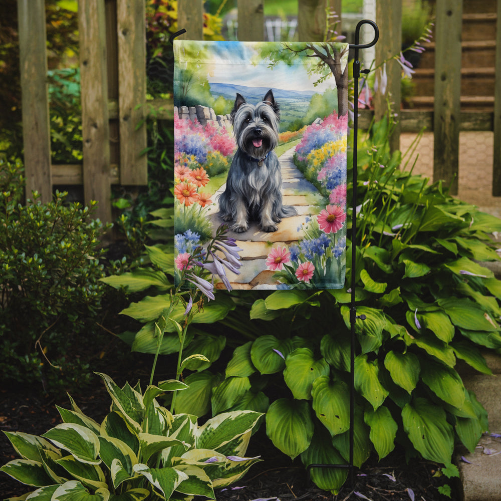 Skye Terrier Spring Path Garden Flag – Dog-Themed Floral Outdoor Decor