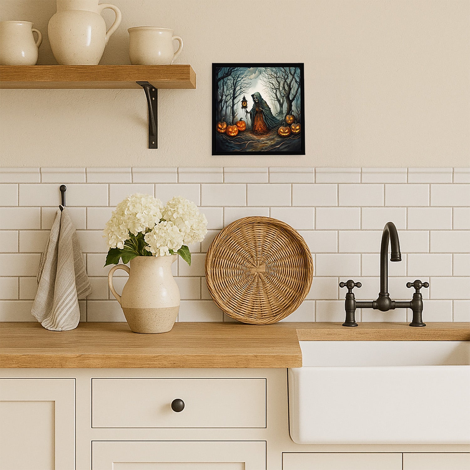 Celebrate Halloween with this Halloween Framed Metal Print. Looking for wall art that’s stylish, safe, and made to last? Our 8x8 Framed Metal Prints are designed with modern living in mind. Each piece features original artwork printed on durable aluminum, set in a sleek frame that measures 3/4 inch deep for a clean, contemporary finish. Unlike glass prints, these are lightweight, shatter-free, and family-safe. Perfect for kitchens, bathrooms, or covered porches where traditional décor might not hold up. The built-in sawtooth hanger molded into the back makes it easy to hang right out of the box—just use your own nails or screws. Cleaning is simple too: a quick wipe with a damp cloth and mild soap keeps your artwork looking vibrant. Proudly made in Alabama, every print supports our community of artists while adding personality and charm to your home.