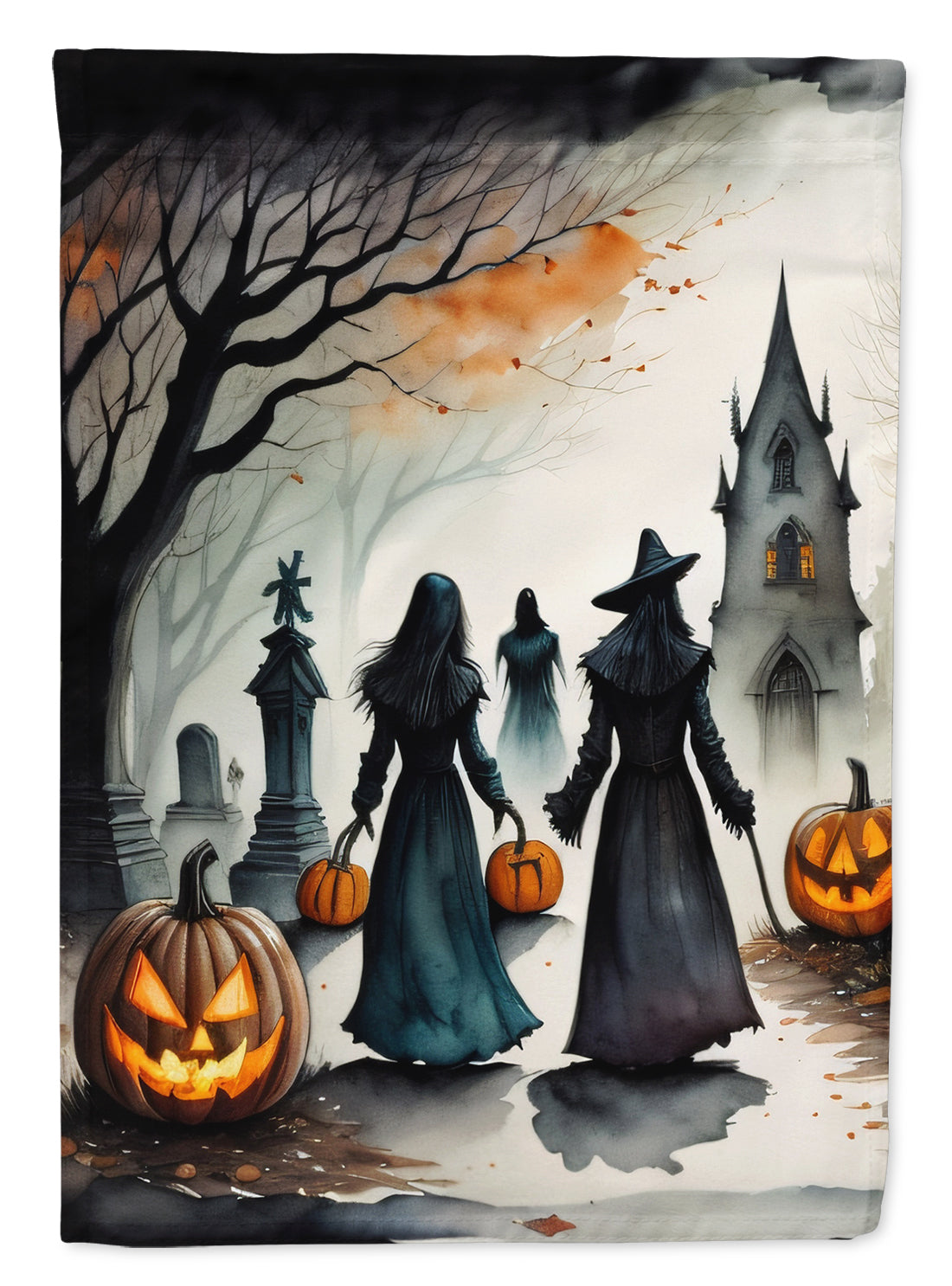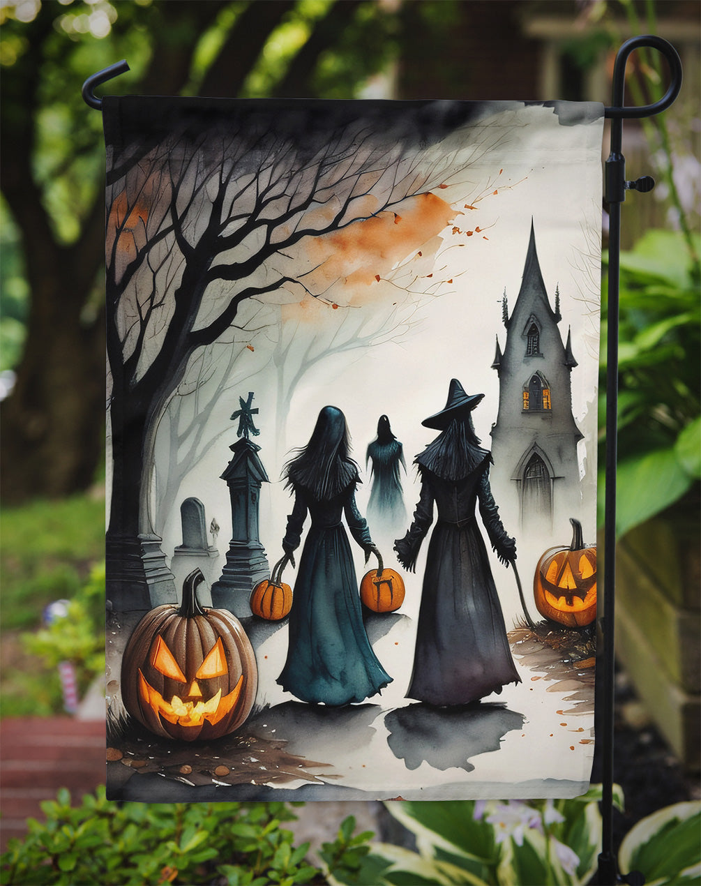Decorate your space with our Halloween artwork on a Garden Flag. Enhance the beauty of your garden, patio, or yard with Caroline's Treasures Decorative Garden Flag, proudly made in the USA. Crafted from two pieces of thick, double-sided polyester fabric, this 2-ply garden flag is designed to withstand various weather conditions, making it water-resistant and weatherproof. Featuring correctly readable words on both sides, this garden flag offers a delightful visual experience from any angle. With its heavier weight, it stands out among other garden flags, ensuring stability and durability even in wind, rain, and snow. Measuring approximately 11 1/4 inches by 15 1/2 inches, this flag allows you to personalize your outdoor decor. It comes with a 1 1/2-inch sleeve sewn in, allowing easy attachment to any standard garden flag stand or garden size porch hanger (sold separately). Make a statement in your outdoor space with Caroline's Treasures Decorative Garden Flag, a vibrant and high-quality flag that adds color and personality to your surroundings. Proudly made in the USA, it's a symbol of quality craftsmanship and attention to detail.