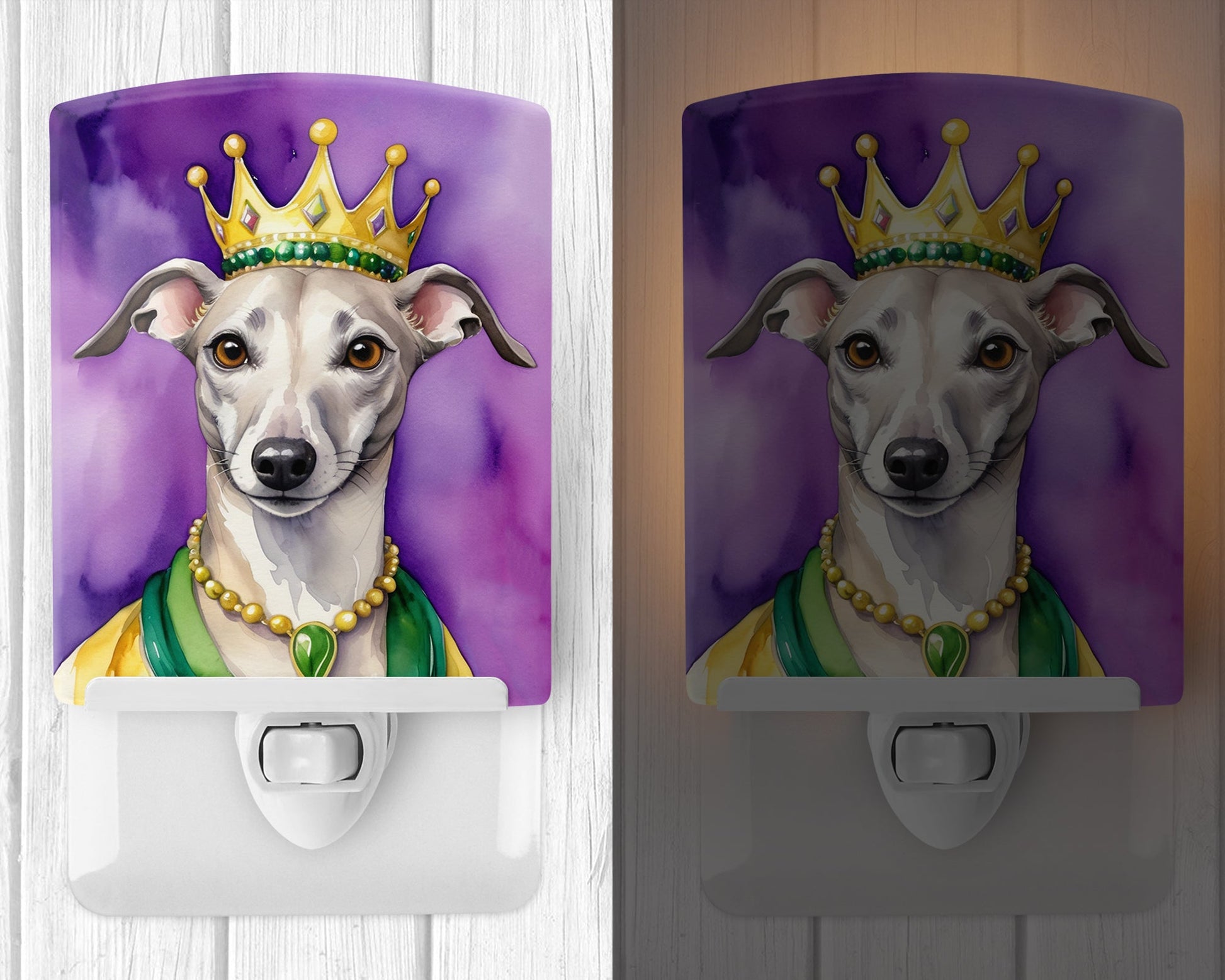 Decorate your space with our Mardi Gras Whippet artwork on a Night Light. Introduce a splash of artistic flair and subtle illumination to your space with the Decorative Ceramic Night Light from Caroline's Treasures. Perfect for any room, this night light seamlessly blends functionality with an aesthetic appeal, offering a stylish solution to brighten up dark corners of your home or office. Boasting a six-inch high by four-inch wide ceramic tile at the front, it showcases vivid, full-color artwork from distinguished artists, transforming a simple utility into a vibrant art piece. The artwork is securely encased in a robust metal holder, ensuring durability and longevity. Two screws are provided to firmly affix the tile into the holder. The holder extends three inches deep, housing an included bulb that emits a soft, welcoming glow. This product meets all safety standards, as evidenced by its UL approval. Proudly made in the United States from imported components, this Decorative Ceramic Night Light is not just a functional device; it's a statement piece that enhances the ambiance of your surroundings.