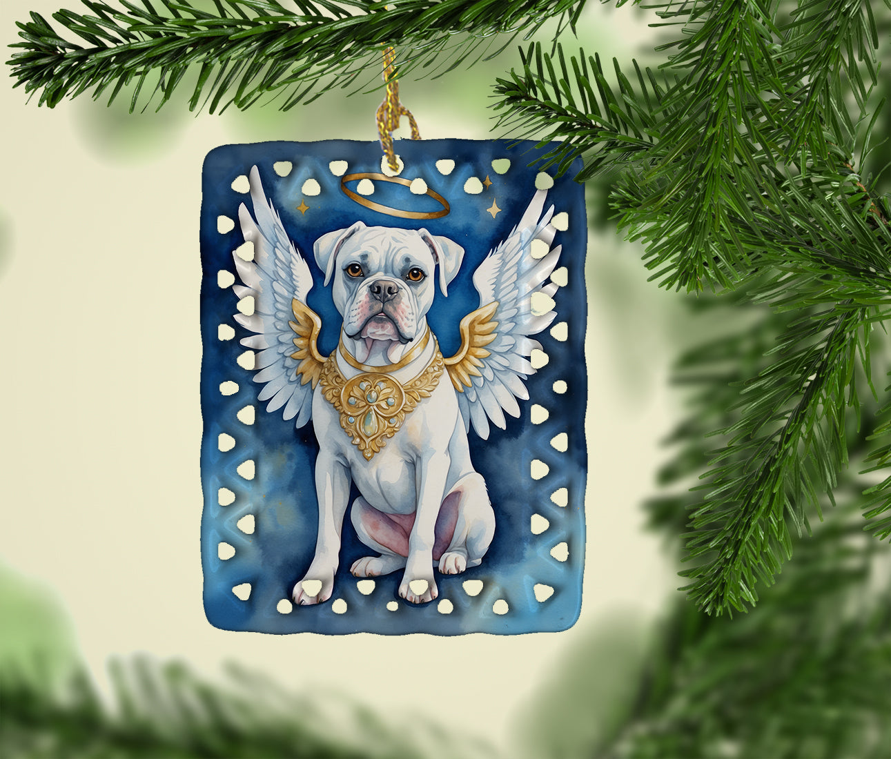 Porcelain Ornament featuring breed specific Boxer artwork. Celebrate Christmas with this Christmas Ornament. Add a unique, personal touch to your holiday decor with our Rectangular Lattice Porcelain Ornament. Perfect for creating cherished memories, this high-quality ornament shines under festive lights, reflecting warmth and joy throughout your Christmas tree. Crafted with a glossy finish, it showcases vibrant, full-color artwork contributed by our talented artists, ensuring your tree is adorned with a burst of color and holiday spirit. What sets this Porcelain Ornament apart is its customizable white back. Use a paint pen or permanent marker to write a heartfelt message, commemorate a special year, or mark an unforgettable date, turning this ornament into a keepsake that will be treasured for years to come. For best results, allow any personalization to dry thoroughly before handling. Each ornament comes complete with a delicate gold cord, making it easy to hang and display. Proudly made in the USA, this ornament measures 3.375 x 2.625 inches and is a thoughtful gift for pet sitters, teachers, family members, or anyone who would appreciate a little extra holiday magic. Bring style, charm, and a touch of personal meaning to your Christmas tree with this beautifully designed ornament..