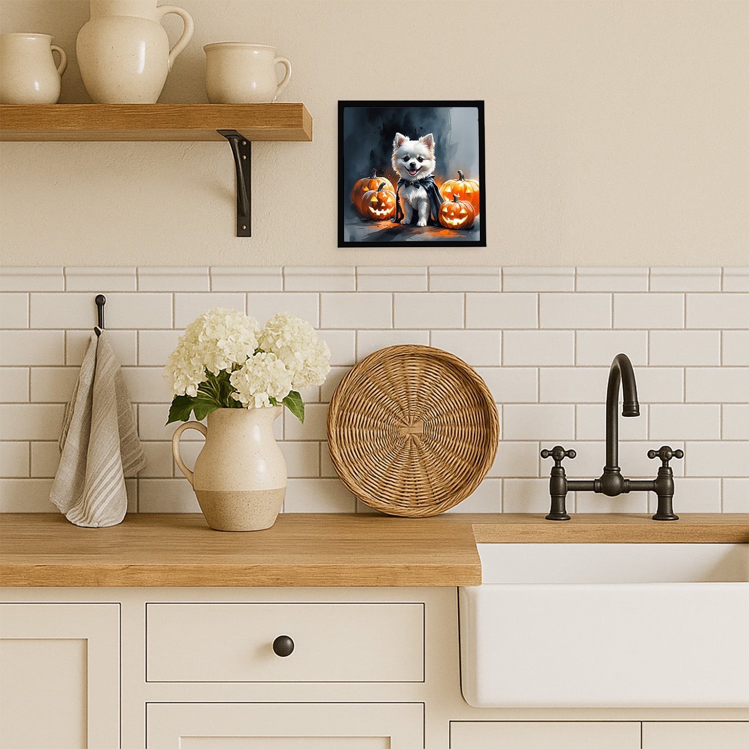 Framed Metal Print featuring breed specific Pomeranian artwork. Celebrate Halloween with this Halloween Framed Metal Print. Looking for wall art that’s stylish, safe, and made to last? Our 8x8 Framed Metal Prints are designed with modern living in mind. Each piece features original artwork printed on durable aluminum, set in a sleek frame that measures 3/4 inch deep for a clean, contemporary finish. Unlike glass prints, these are lightweight, shatter-free, and family-safe. Perfect for kitchens, bathrooms, or covered porches where traditional décor might not hold up. The built-in sawtooth hanger molded into the back makes it easy to hang right out of the box—just use your own nails or screws. Cleaning is simple too: a quick wipe with a damp cloth and mild soap keeps your artwork looking vibrant. Proudly made in Alabama, every print supports our community of artists while adding personality and charm to your home.