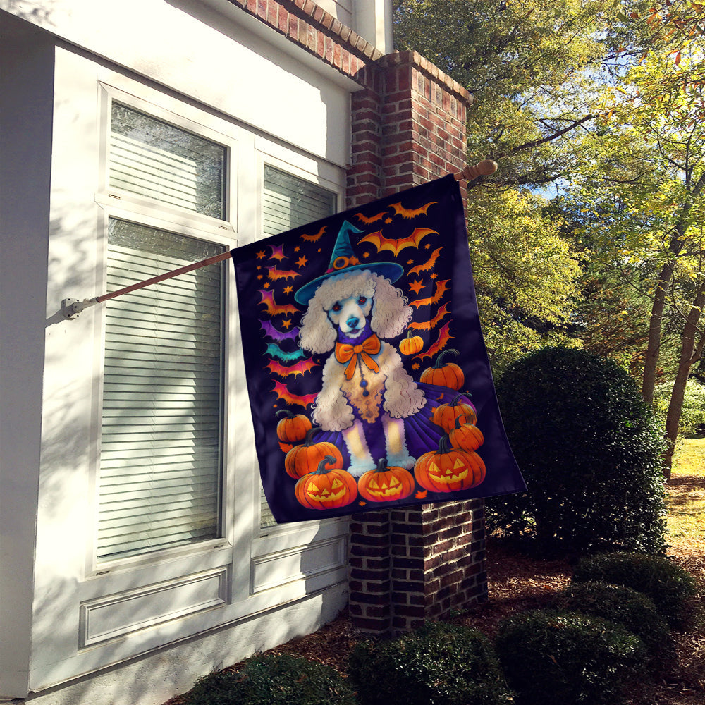 White Standard Poodle Witchy Halloween House Flag