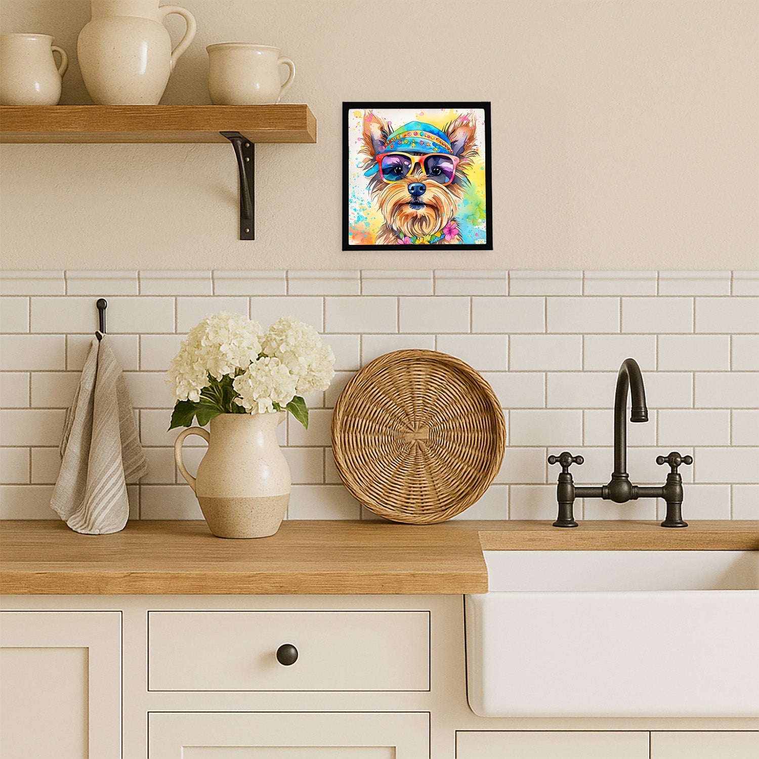Framed Metal Print featuring breed specific Yorkshire Terrier artwork. Looking for wall art that’s stylish, safe, and made to last? Our 8x8 Framed Metal Prints are designed with modern living in mind. Each piece features original artwork printed on durable aluminum, set in a sleek frame that measures 3/4 inch deep for a clean, contemporary finish. Unlike glass prints, these are lightweight, shatter-free, and family-safe. Perfect for kitchens, bathrooms, or covered porches where traditional décor might not hold up. The built-in sawtooth hanger molded into the back makes it easy to hang right out of the box—just use your own nails or screws. Cleaning is simple too: a quick wipe with a damp cloth and mild soap keeps your artwork looking vibrant. Proudly made in Alabama, every print supports our community of artists while adding personality and charm to your home.