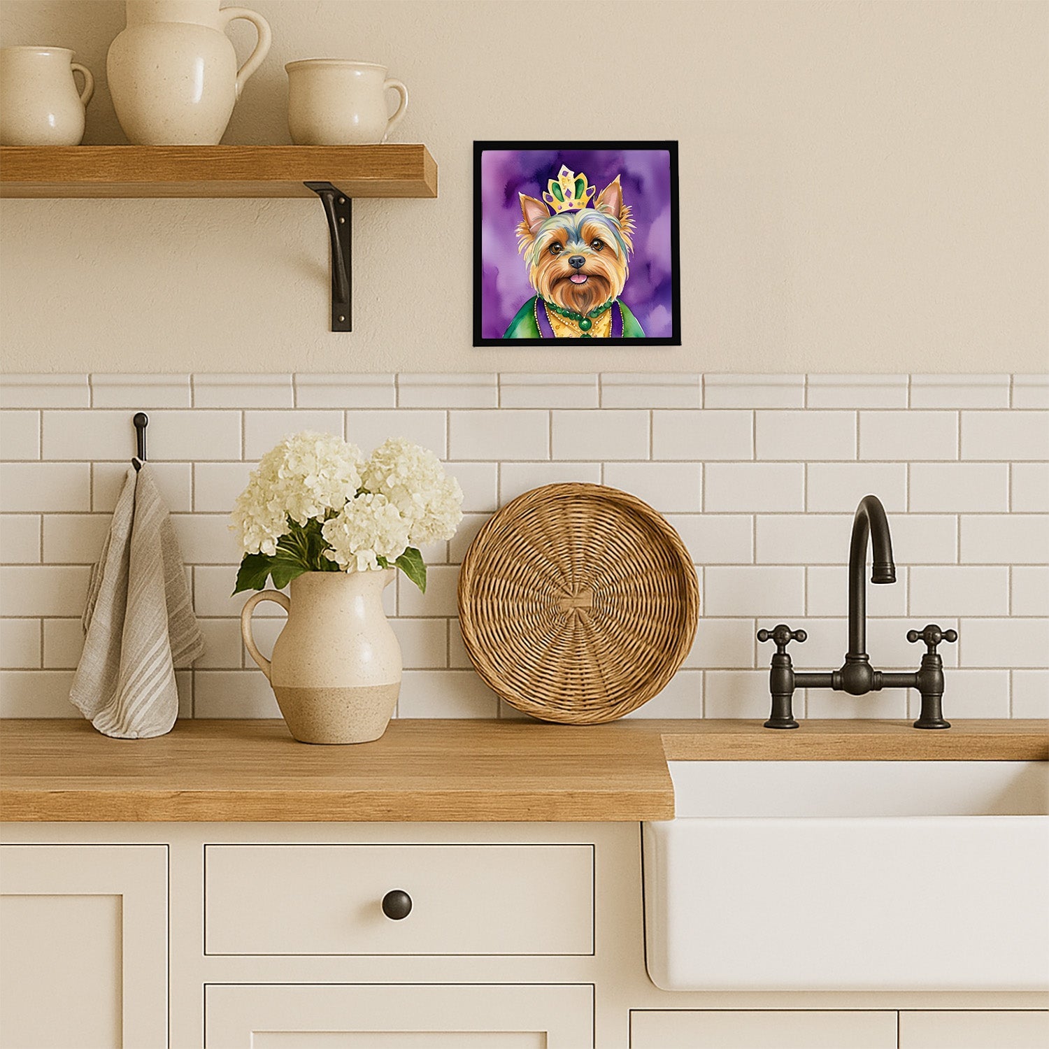 Framed Metal Print featuring breed specific Yorkshire Terrier Yorkie artwork. Celebrate Mardi Gras with this Mardi Gras Framed Metal Print. Looking for wall art that’s stylish, safe, and made to last? Our 8x8 Framed Metal Prints are designed with modern living in mind. Each piece features original artwork printed on durable aluminum, set in a sleek frame that measures 3/4 inch deep for a clean, contemporary finish. Unlike glass prints, these are lightweight, shatter-free, and family-safe. Perfect for kitchens, bathrooms, or covered porches where traditional décor might not hold up. The built-in sawtooth hanger molded into the back makes it easy to hang right out of the box—just use your own nails or screws. Cleaning is simple too: a quick wipe with a damp cloth and mild soap keeps your artwork looking vibrant. Proudly made in Alabama, every print supports our community of artists while adding personality and charm to your home.